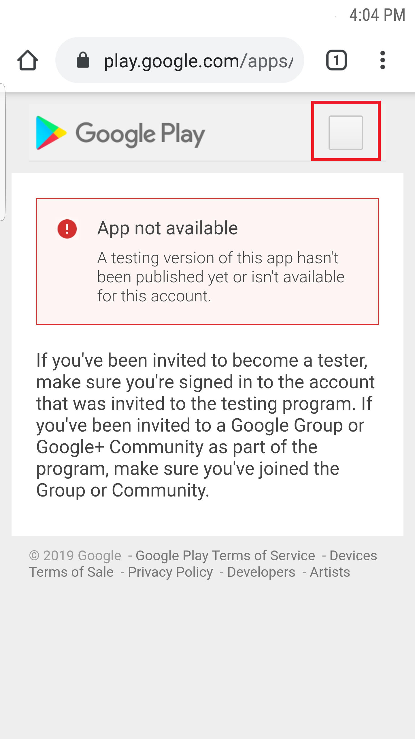 1a. If you see the error below, click the box next to the Google Play title. Otherwise go to step 2.