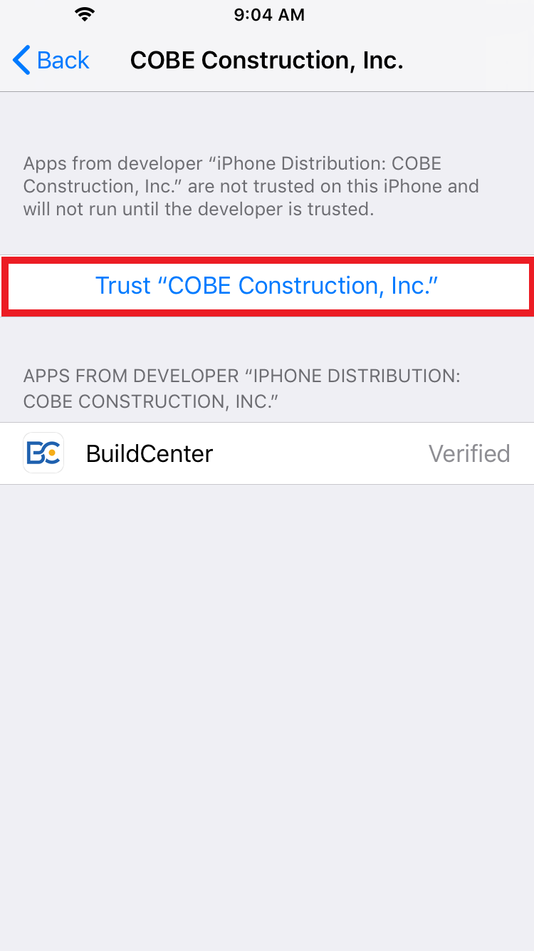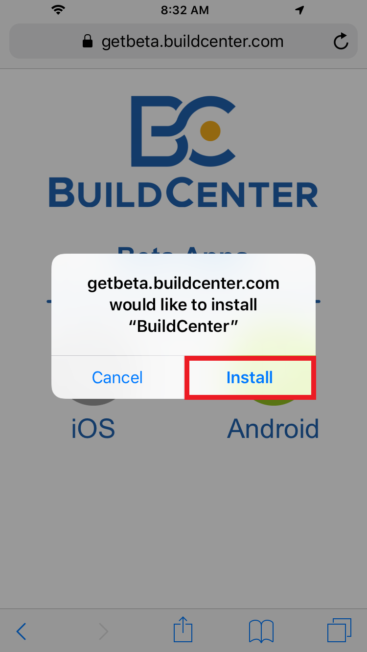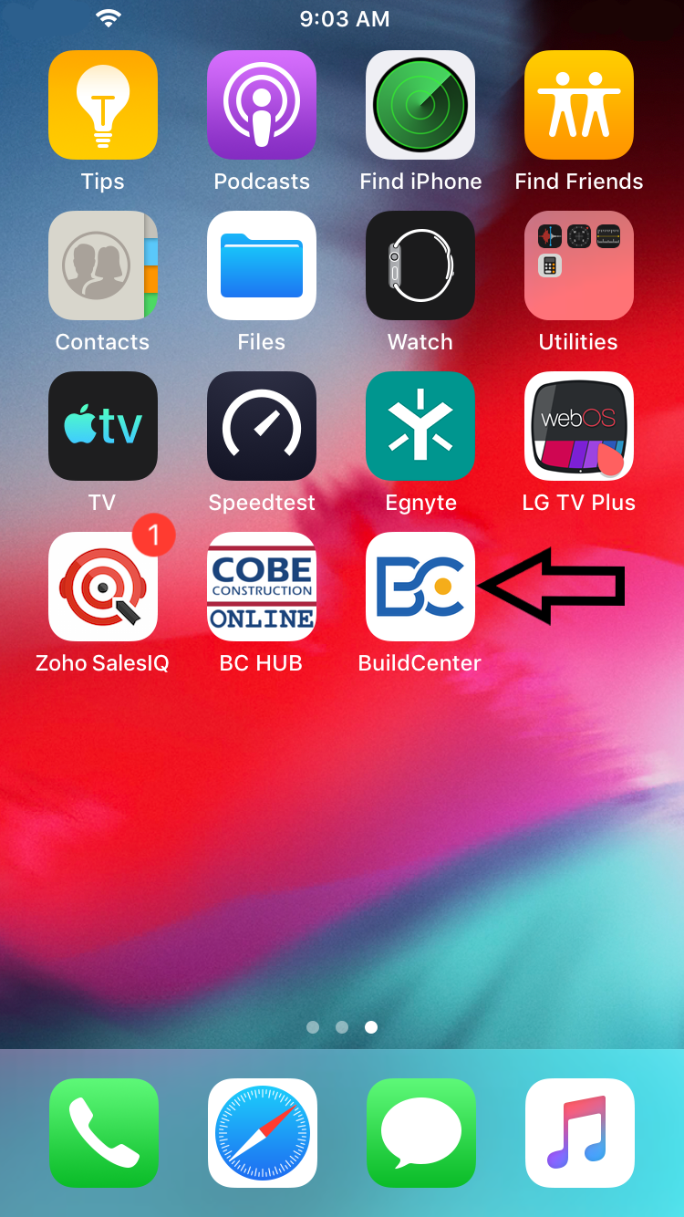 3. Go to home screen, find the BuildCenter app to verify the install.