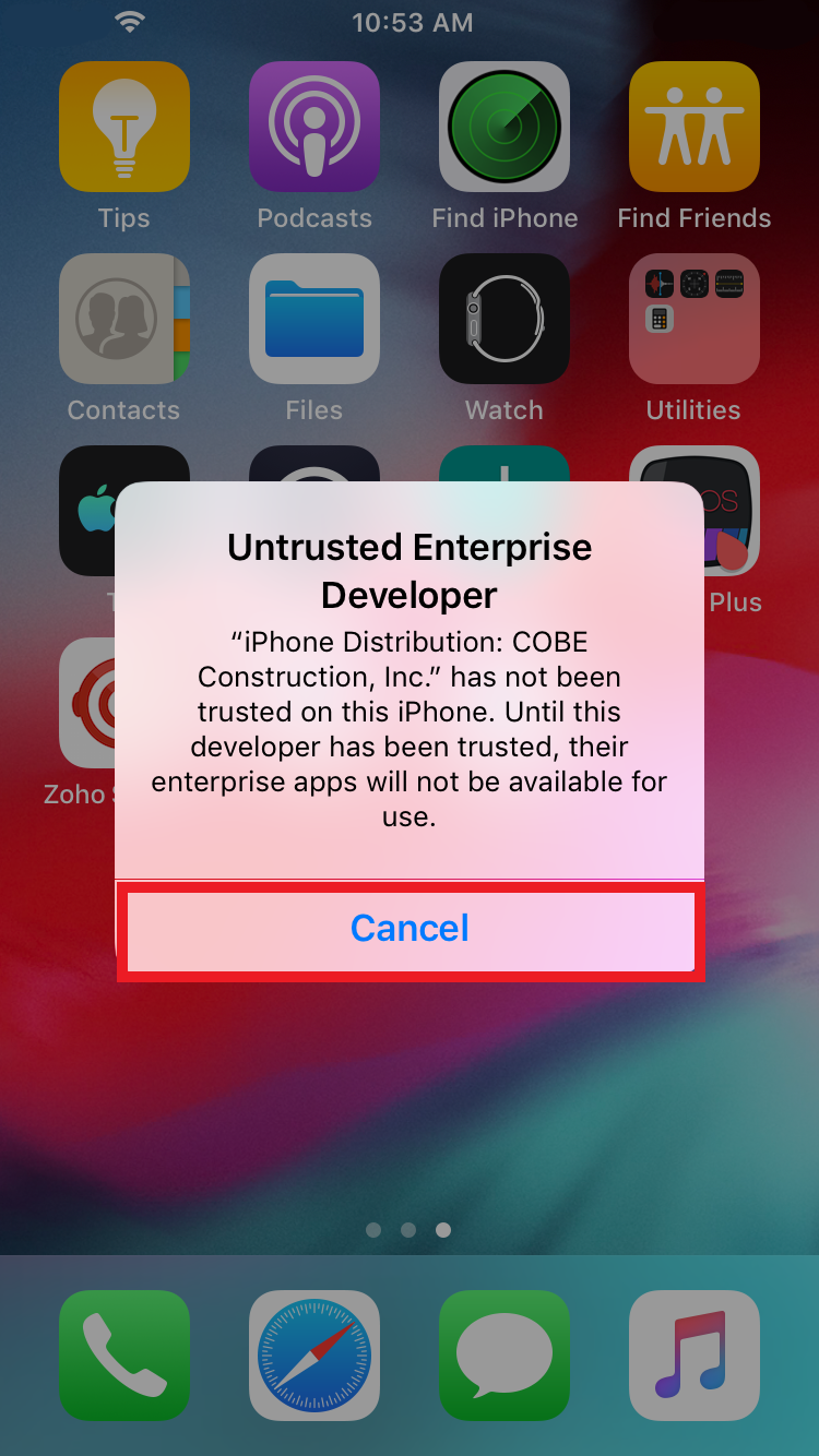 Note: If you open the BuildCenter app, and receive the error below, click cancel and continue to step 4.