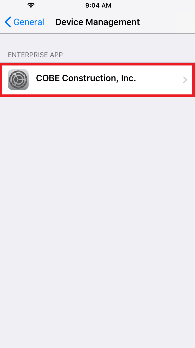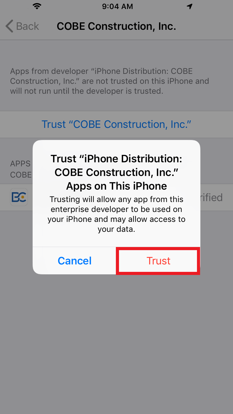 8. Click on Trust COBE Construction, Inc.